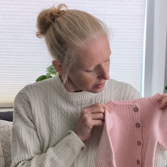 Wrap your little one in the softest organic Egyptian cotton with a cardigan you lovingly knit yourself. Elowen has a simple, delicate design that’s both classic and delightfully sweet.